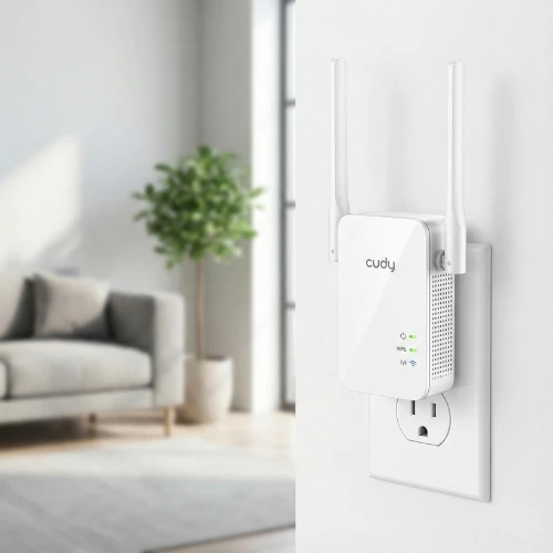 Boost your home's Wi-Fi network and banish weak signal spots with the Cudy AC1200 Range Extender. This device delivers dual-band wireless speeds of up to 1200 Mbps (300 Mbps on 2.4 GHz + 867 Mbps on 5 GHz), ensuring reliable and fast connectivity for all your devices throughout your home.